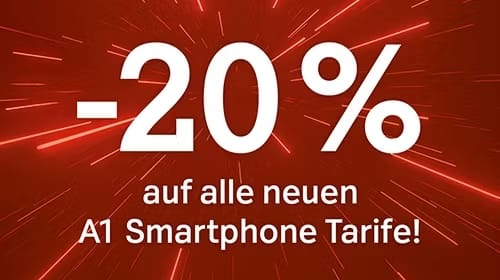 -20% auf die Tarife A1 Mobil S-L, A1 SIMply S-L, A1 Xcite und A1 SIMply Xcite. 24 Monate lang. Kein Aktivierungsentgelt. Ohne Servicepauschale.